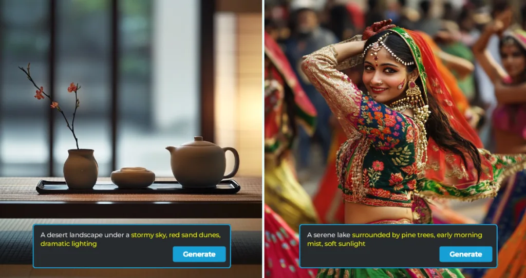Sample prompt 1: Traditional Japanese tea ceremony indoors, soft lighting, minimalistic decor