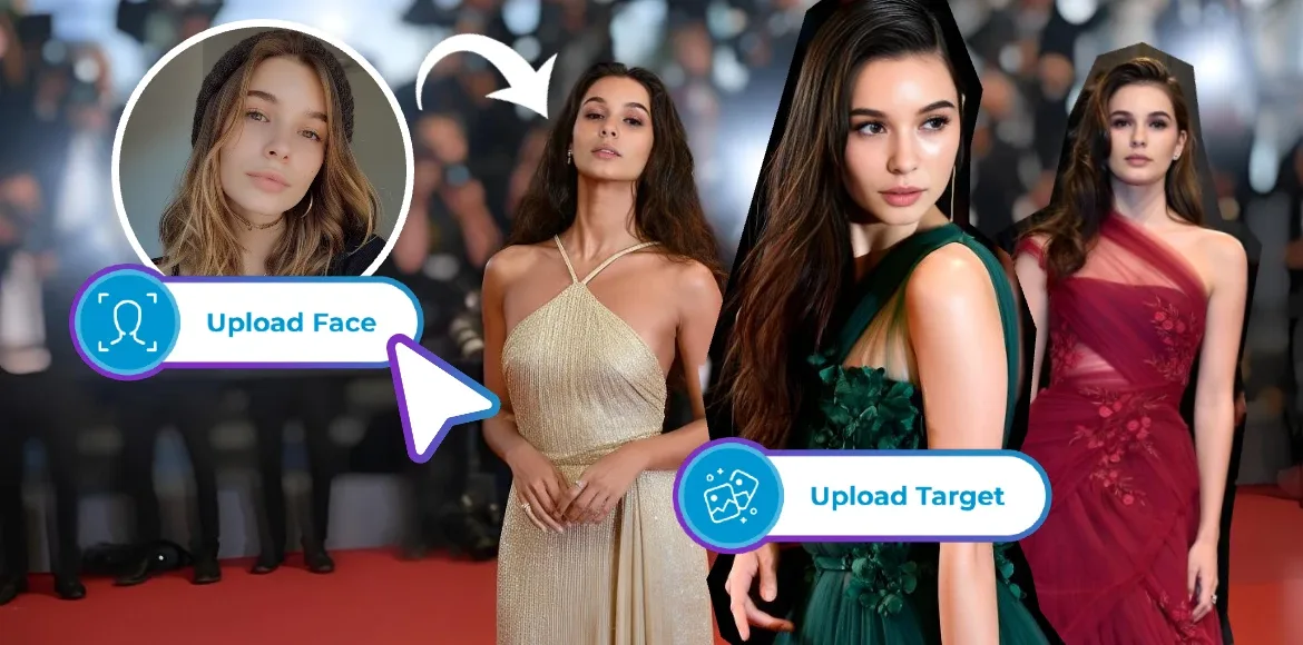 Start with a strong base image. Glamorous red carpet visuals with high contrast lighting, confident poses, sequined gowns, or tailored tuxedos provide a powerful foundation for face swapping. Clear highlights and shadows allow facial features to blend more naturally and give the final image a cinematic, editorial finish.